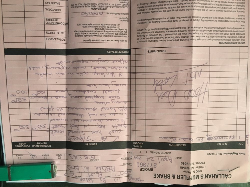 What do customers say about Callahan’s Muffler and Brake?